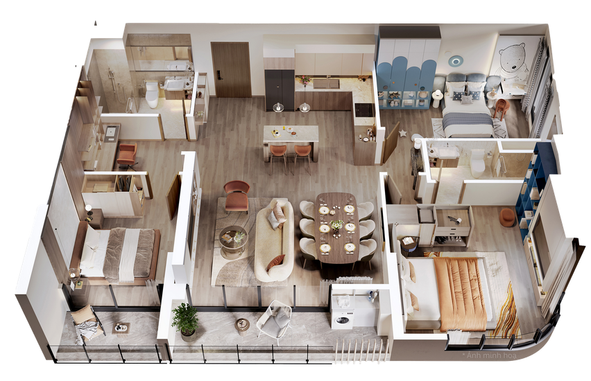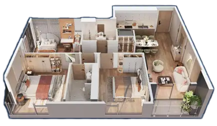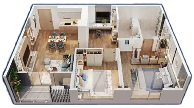 Các căn hộ được thiết kế theo triết lý biophilic – sống giao hòa cùng thiên nhiên, tận dụng tối đa ánh sáng và gió trời, kết hợp cùng nội thất cao cấp, hành lang rộng rãi có điều hòa, tạo nên không gian sống thông minh, tinh tế và giàu cảm xúc. Từng chi tiết được chăm chút để mang đến sự thư thái, tái tạo năng lượng và cân bằng thân – tâm – trí cho cư dân.