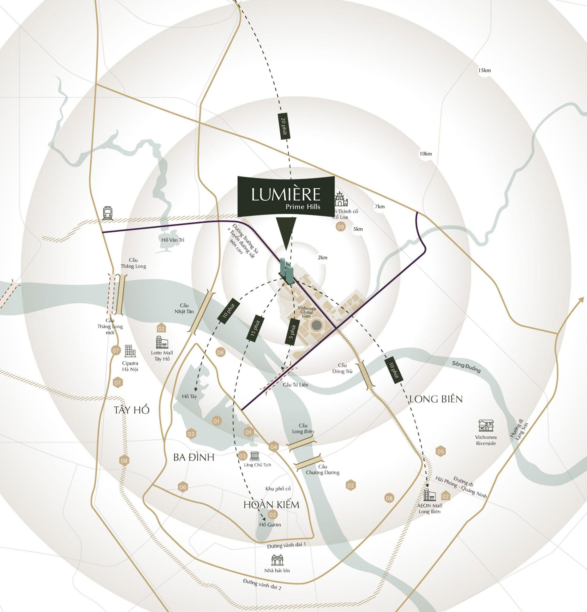 Lumiere Prime Hills tọa lạc tại vị trí trái tim của thành phố quốc tế Vinhomes Global Gate – trung tâm sôi động mới bên kia sông Hồng, nơi hội tụ hoàn hảo giữa vị trí chiến lược, cảnh quan sinh thái và giá trị văn hóa nghìn năm.