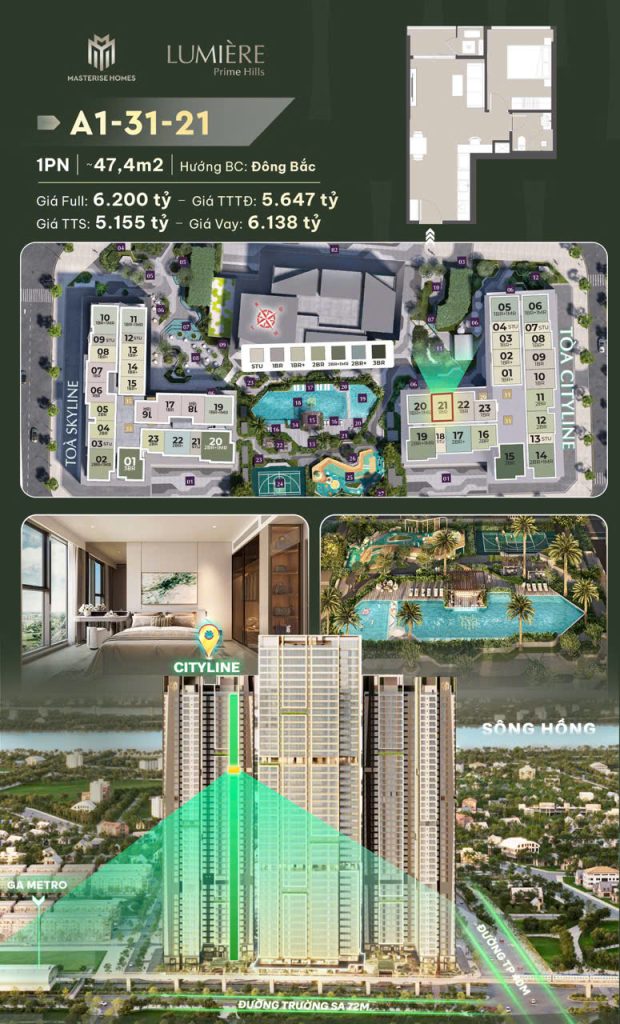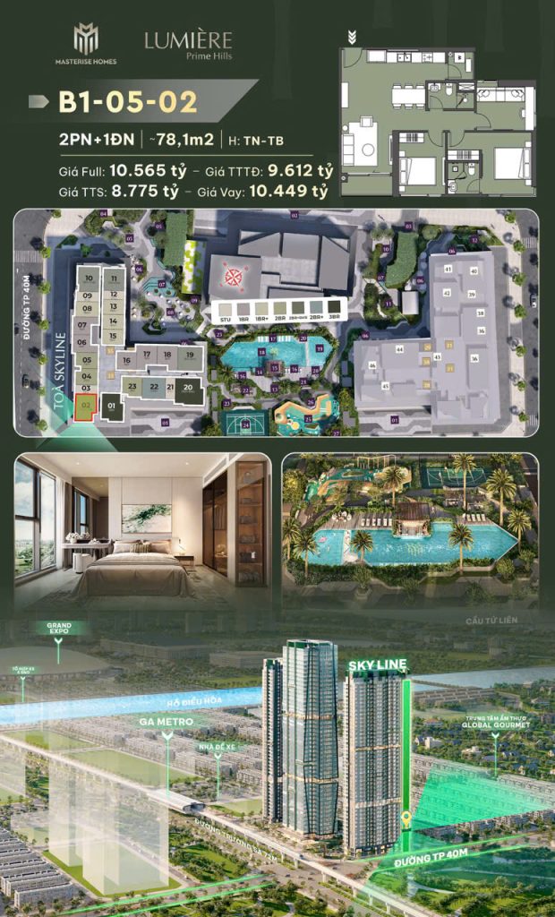 Không chỉ thụ hưởng vị trí giao thông đắc địa, Lumiere Prime Hills còn nằm trong khu vực được quy hoạch là đô thị thông minh kiểu mẫu của Hà Nội, với hệ thống hạ tầng, metro, hành chính và tiện ích công cộng đang được đầu tư đồng bộ – hứa hẹn tạo nên một tâm điểm sống mới, giàu tiềm năng gia tăng giá trị trong tương lai.
